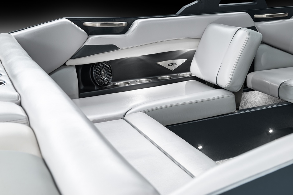 The P.S.P. starts with the Wake Plus hull design engineered for this A22 model. Combine this with wave engineering running surfaces and customised swim platforms. Then, for a bigger wake flip a switch to fill the Hard-Ballast system for wake-creating ballast. Get the fore and aft Plug'n'Play ballast option to add another 570 kgs. for the biggest wake you've ever seen, equip your Axis A22 with the Auto-Set Wedge hydrofoil. Drop the wedge in the water and instantly gain another 455 kgs of wake-generating water displacement.