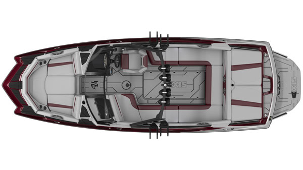 At 24 feet,  this is the biggest boat in the Axis Line. With seating for 17 and 4,875 pounds of available ballast loading down the patented Wake Plus Hull, the A24 delivers a truly pro-level wake with no one left behind. Opt for the Performance Surf Package to bring the ocean inland with Surf Gate, Surf Band and the Power Wedge III. On top of that, upscale amenities like the new soft Grip foam flooring, Rear-Facing sliding Skybox Seat and enormous pickle-fork bow make the A24 the undisputed total package.
