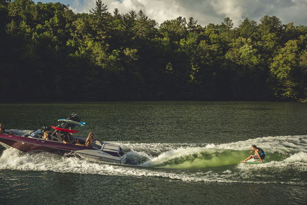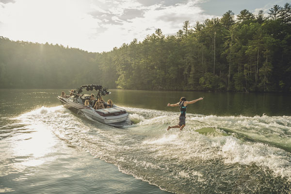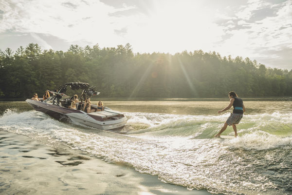 With the P.S.P. and Surf Gate, the driver can dial in the wakes and waves to make the perfect watersports playground for any rider, every time. Wearing the Surf Band, the rider can control the Surf Gate, speed and stereo volume right from the board.
