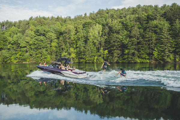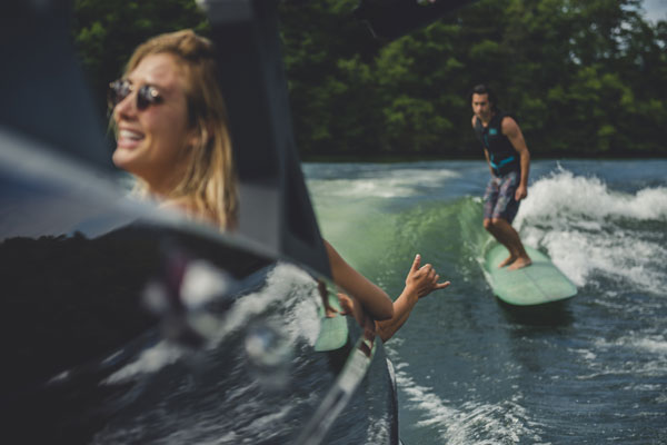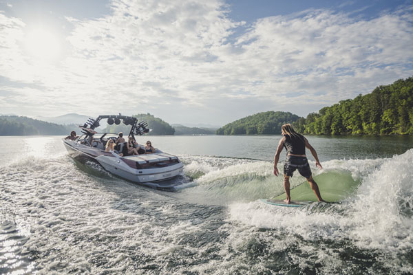 Wait until you see how easy it is to turn that wake into an endless, customisable wave for surfing. Drop the Wedge and then flip a switch to activate Surf Gate. That's it. The Surf Gate's high-speed hydraulic actuators let you quickly shift the wave from side to side for regular or goofy styles.