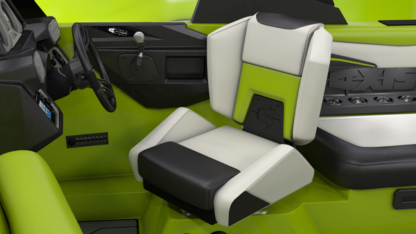 The striking dash design with glowing white 3-in-1 gauges gives the cockpit a classic sporty look. There's more function with the central touch screen that integrates menu navigation, Surf Gate control, speed control and more. The panel of soft-key switches puts major controls at the driver's fingertips, and the helm and transom remotes for the audio system let the driver or passengers adjust the music.