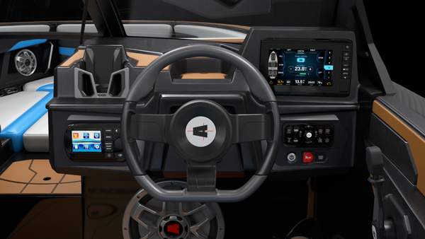 The striking dash design incorporating the new Garmin display gives the cockpit a cool, clean, modern look. There's more control with the Sport Dash tactile buttons for quick access to functions and menus, integrating Surf Gate control, speed control, and more. To the left of the steering wheel, with controls at the driver's fingertips, is the remote for the audio system positioned to let the driver or passengers adjust the music.