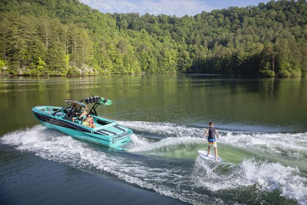 Wait until you see how easy it is to turn that wake into an endless, customisable wave for surfing. Drop the Wedge and then flip a switch to activate Surf Gate. That's it. The Surf Gate's high-speed hydraulic actuators let you quickly shift the wave from side to side for regular or goofy styles.