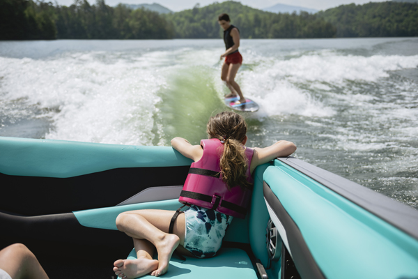 With the P.S.P. and Surf Gate, the driver can dial in the wakes and waves to make the perfect watersports playground for any rider, every time. Wearing the Surf Band, the rider can control the Surf Gate, speed and stereo volume right from the board.