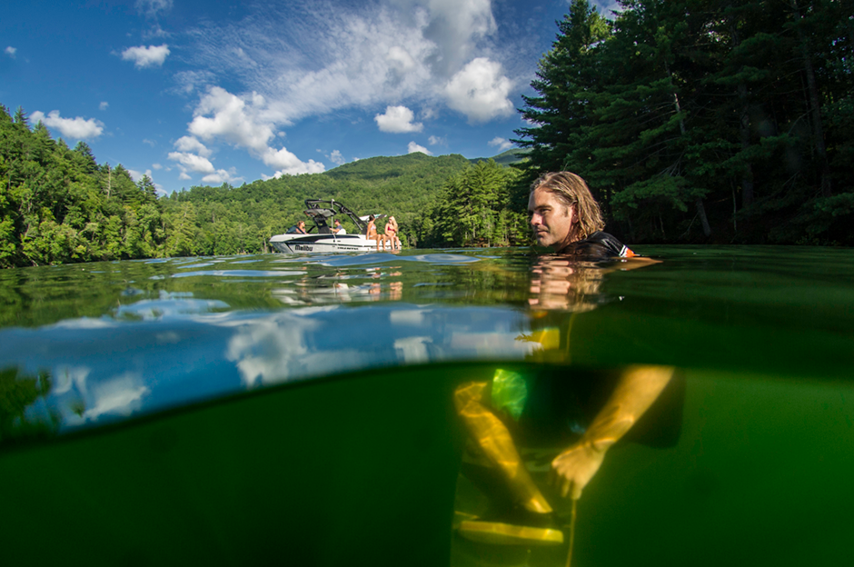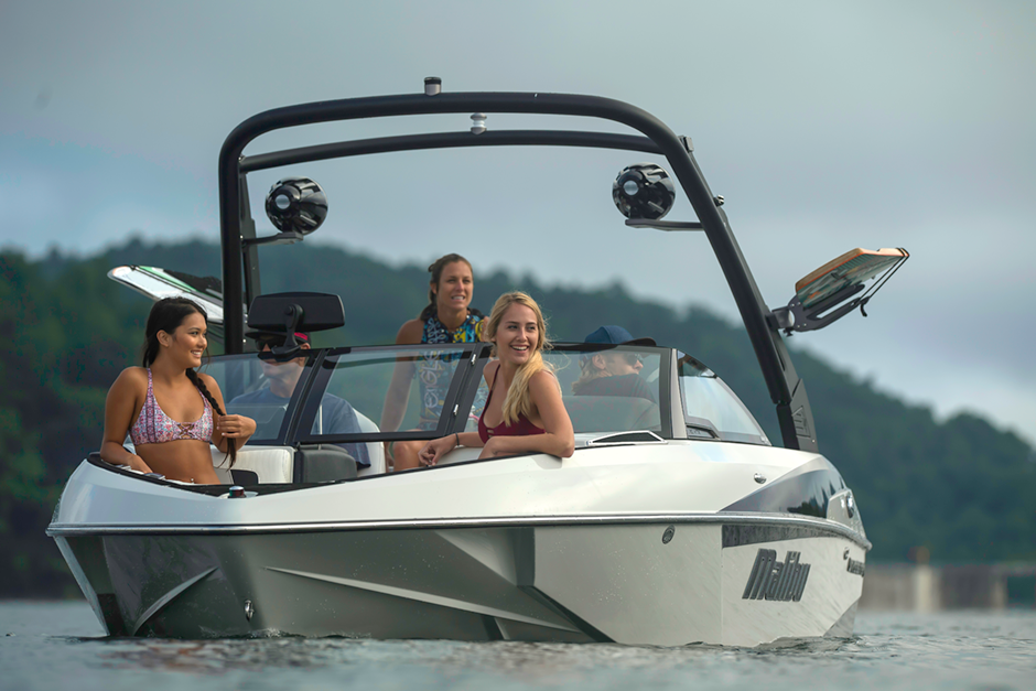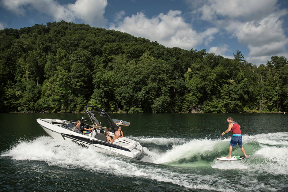 After surfing behind it, we had to remind ourselves that this 20-footer was a multisport crossover boat. The wave was so nice that it was easy to believe this boat was made solely for surfing. For such a small boat, the 20 VTX throws a powerful wave. There was a ton of push, even as we went really far back. Many 20-foot boats don’t produce a wakesurfing wave with long pockets, but the 20 VTX is different. And we were stoked by the steepness of this wave, which was actually on par with the waves produced from Malibu’s bigger models. Thanks to the Integrated Surf Platform technologies, the waves on this boat can easily be adjusted to accommodate riders of all ages and skill levels. And with Malibu’s Surf Band, you can control the wave right from your board, making it more steep or mellow, faster or slower, and even transferring sides, all at the touch of a button.