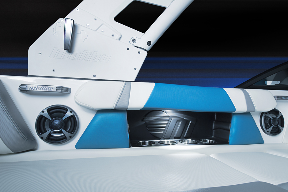 Our staff’s wakesurfing experts were amazed that a boat this size can throw such a long and powerful wave, but, like Malibu says, the truth is on the water. We were really impressed with the length of the pocket on the 21 VLX. We were able to drop back so unbelievably far and the wave still had a ton of push, an uncommon trait for a smaller-size boat. But because of the Surf Gate, combined with the Power Wedge II, all the boats in the 2017 Malibu lineup throw clean, consistent and massive waves. And with Surf Band, which you wear on your wrist while surfing behind the boat, you can control and tweak the wave to your liking while out on the water. The driver can easily command all settings from the 12-inch in-dash touchscreen display, as well as the smaller 7-inch display at the helm.
