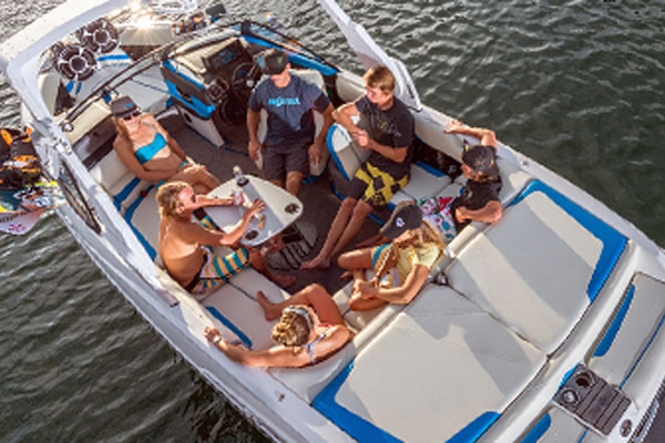 I'M ALWAYS PSYCHED TO HAVE A 22 VLX TO PLAY WITH.The layout and interior are comfortable and luxurious. The Wake is awesome, especially with the Power Wedge II, and it's perfect for pulling off my favorite tricks. And this boat is amazingly roomy for a 22-footer. I can always fit everyone and everything in it, no problem.