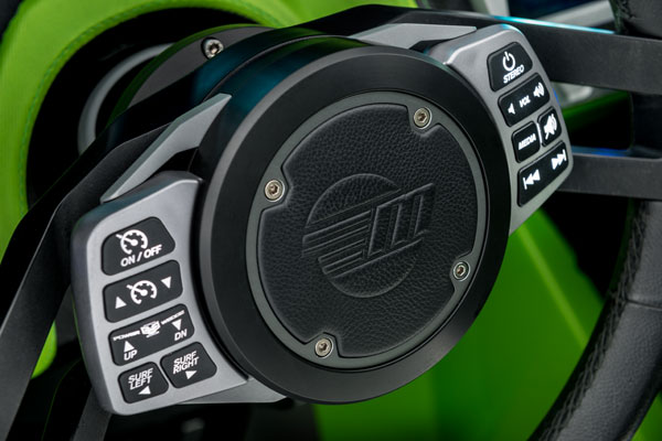 The award wining Malibu Steering Wheel Control cleverly remains horizontal while the steering wheel itself rotates around the controls. This provides you with another way of accessing Malibu's array of Wake & Wave Shaping technology, which is Malibu's Integrated Surf Platform (ISP), along with controls for the sound system.