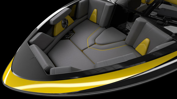 * Wet Sounds stereo system with six speakers carries tunes throughout the boat and out to the rider.