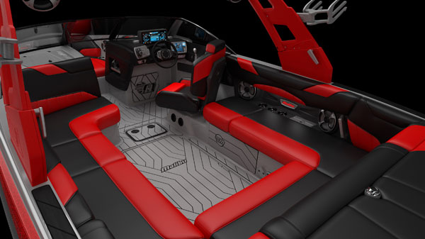 The ISP’s Quad Hard-Tank Ballast system and Malibu’s Power Wedge III (the third-generation of our award winning patented hydrofoil) lets you add up to 1,920 kgs of wake-creating ballast at the tap of your finger on one of the dual touch-screens forming our Command Center.